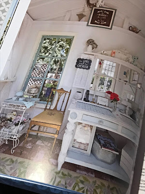 And check out this room in one of the book's she sheds. My eyes went straight to the tea cart at left and then to that teapot up top. (Did yours?)