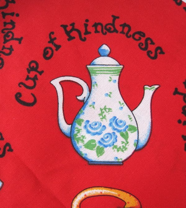 I also like to imagine all the different things folks make with fabric. Here is one yard of a red Mary Engelbreit teapot print. It could be a tea cozy, or a small table scarf or cloth, or napkins, or ...