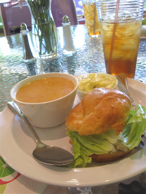 My Special of the Day was special indeed: Shrimp and Lobster Bisque, a Chicken Salad Croissant, Potato Salad, Iced Black Tea (sweetened perfectly!) and an Ice Cream Cone for dessert (I chose chocolate in a waffle cone), all for just $6.95. W-O-W!