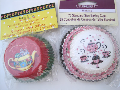 There are two different sets of tea-themed cupcake papers from Michaels.