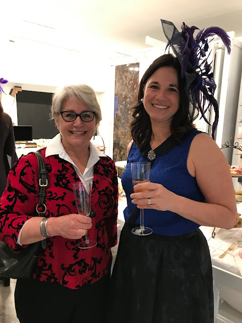Here, one of her fascinators is modeled by Angela Avery. She and Dr. Karl Walbrook own a new tearoom, The Ginger Room Alpharetta, that's getting lots of buzz and is on my must-visit list! (Pay no attention to the gray-haired lady in the background. She was busy talking to …)